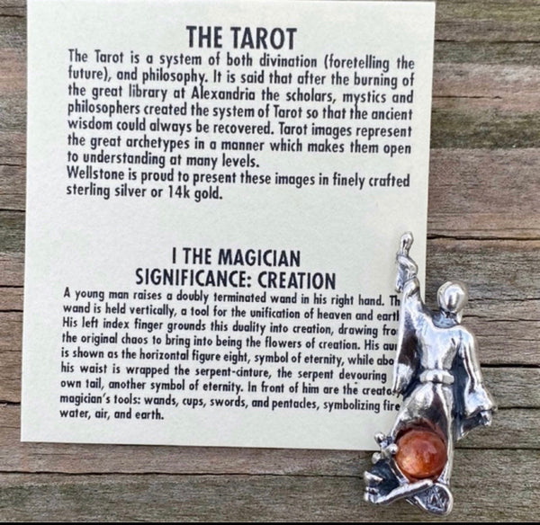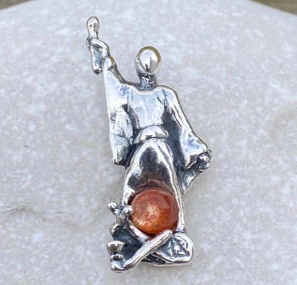 Magician Tarot pendant .925 Sterling Silver w/ genuine Sunstone 3D sculpted Made in the USA