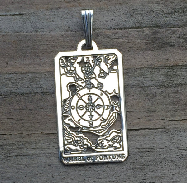 The Wheel of Fortune Tarot Card Pendant - 10 in the Major Arcana.