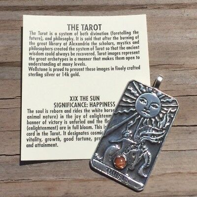 - The Sun Tarot Card Pendant - Number 19 in the Major Arcana. Set with a genuine AAA quality Sunstone gemstone.