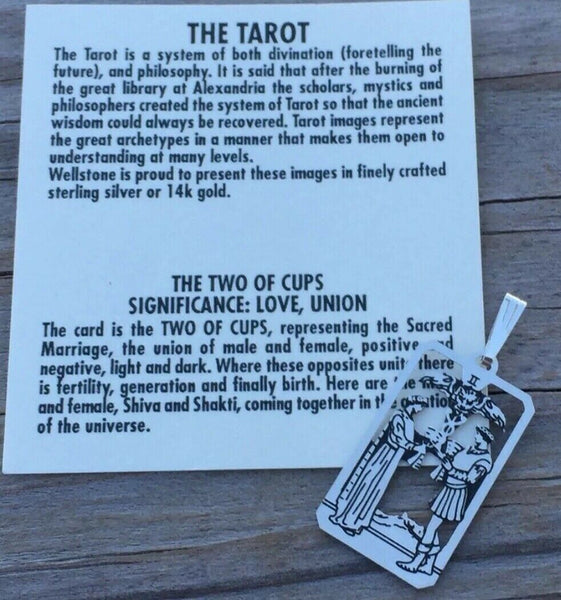 The Two of Cups Tarot Card Pendant - 2 in the Suit of Cups in the Minor Arcana.