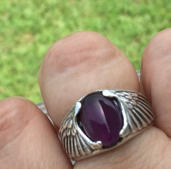 Large Eagle Wing Ring .925 Sterling Silver with Genuine Amethyst Gemstone Made in the USA