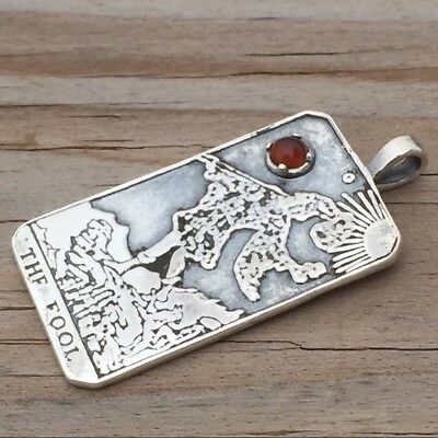 - Sterling Silver The Fool Tarot Card Pendant - 0 in the Major Arcana. Set with genuine natural Carnelian gemstone.