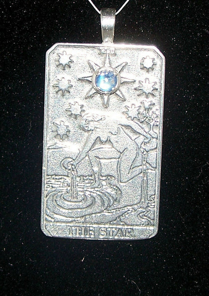 - The Star Tarot Card Pendant with authentic Rainbow moonstone gem.